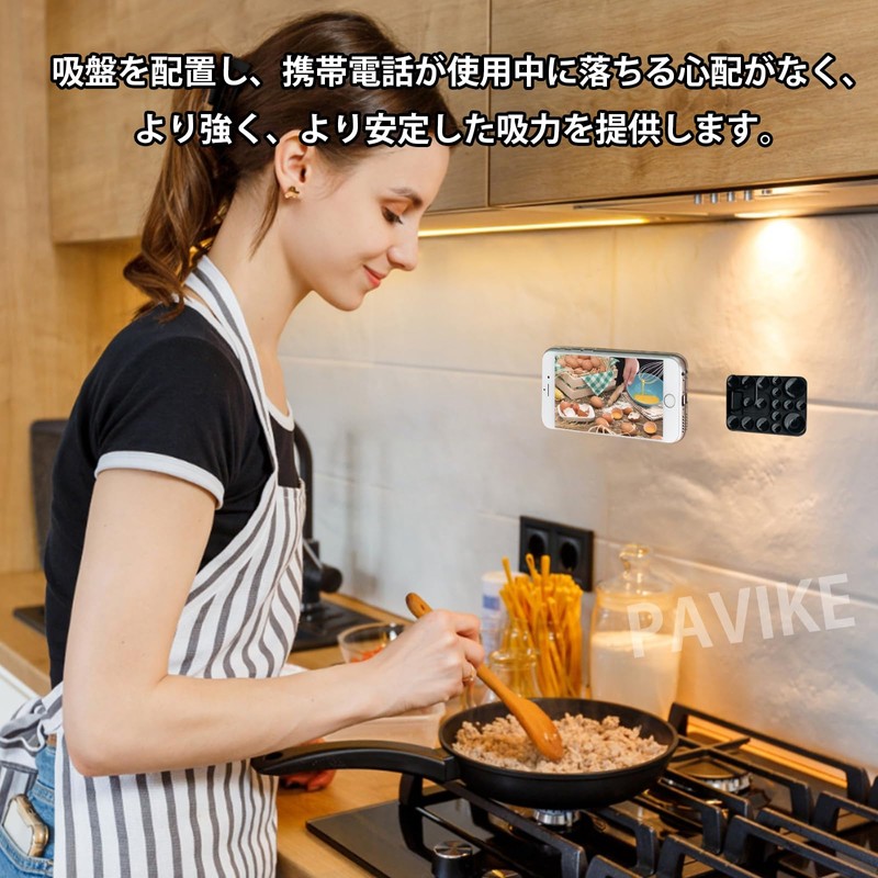 PAVIKE シリコン吸盤式携帯スタンド (2枚入り)シリコン電話吸着マット 吸盤式電話マウント モバイルアクセサリーホルダー 吸引電話ケース 吸引式電話ケースマウント 携帯電話吸盤マット ビデオや自撮り用ハンズフリー ブラック+ホワイト