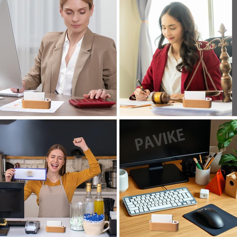 PAVIKE Card Stand, 2 Pieces, Business Card Stand, Wooden Card Stand, Business Card Stand, Wood, Simple Appearance, Desktop Supplies, Suitable for Business Card Organization and Display Storage