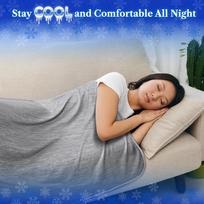 - COLD BLANKET FOR HOT SLEEPERS: If you're a hot sleeper, our summer cooling blanket is your ultimate solution. The breathable nylon Arc-chill fabric wicks away body heat and moisture, allowing you to sleep and nap comfortably and undisturbed. This chill cooling blanket feels like sleeping under a fan with cool air. Say goodbye to restless nights and wake up feeling refreshed and energized with our thin and light weight cooling blanket.
