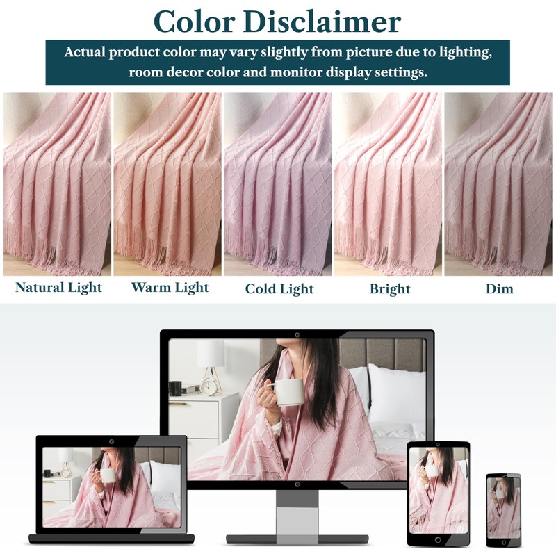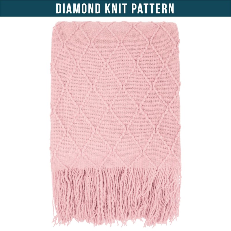 - LIGHT PINK KNIT THROW BLANKET: Measures 60 x 80 inches, this knitted blanket with fringe tassel is made of 100% premium acrylic that is lightweight yet super soft and cozy. Perfect for all seasons, the throw blanket knit is silky smooth to touch, and ideal as a home decor for living room, couch, sofa and bed.