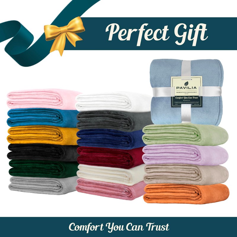 - CLASSIC SAGE GREEN FLEECE THROW BLANKET FOR COUCH: PAVILIA fleece flannel throw blanket is super soft and cozy. Made with premium microfiber fleece, the blanket is warm yet lightweight, making it an ideal all season bed blanket. This versatile fleece blanket will keep you warm during fall and winter and cozy during spring and summer. It is a home essential as a lap throw blanket while watching tv, reading in your living room,office, dorm, and even as a camping travel blanket.