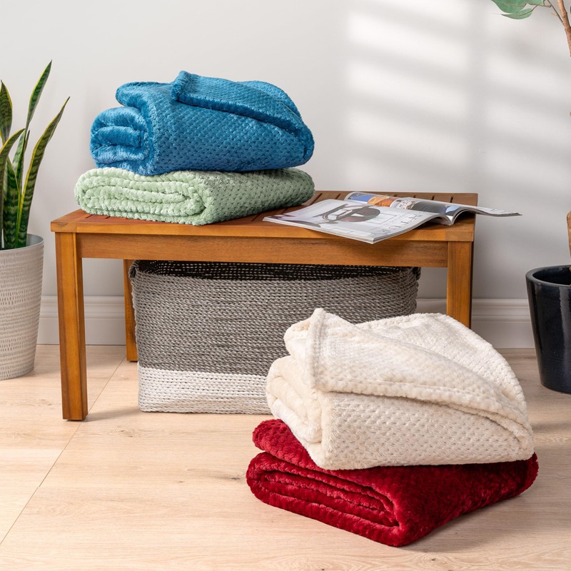 - LIGHT GREEN WAFFLE TEXTURED THROW BLANKET: Measures 60 x 80 inches Twin Size,this soft fleece blanket is made of 260 GSM premium microfiber polyester that is lightweight yet super cozy and warm. Perfect for all seasons, the large fleece blanket for bed and couch is ideal for keeping you warm and fuzzy while watching TV on the sofa or as a decorative blanket at home.