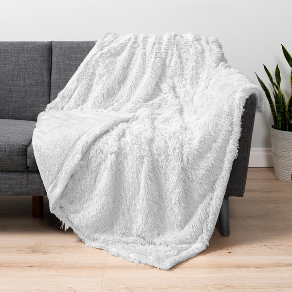 - WHITE FLUFFY FAUX FUR THROW BLANKET: Measures 50 x 60 inches, this soft plush throw blanket for couch is made of 530 GSM premium microfiber polyester that is super cozy and warm. The sherpa blanket for women and men is ideal for keeping you warm and fuzzy while watching TV on the sofa or as a decorative blanket at home.