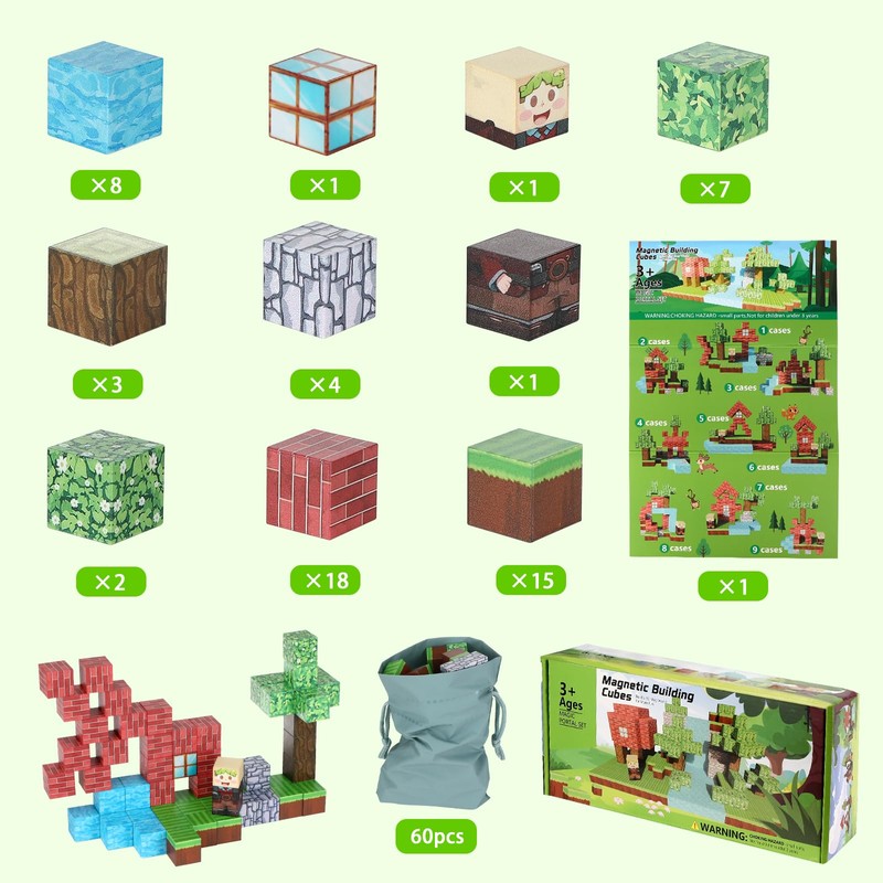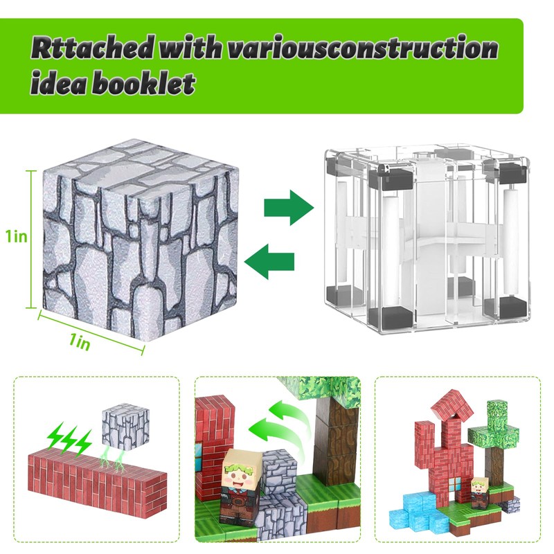 - Build your own mini world: this magnetic building block offers children endless creative possibilities to design and build a variety of structures, from simple to sophisticated constructions. With these magnetic stones in different patterns, players can bring their imaginative visions to life! Children have a strong sense of colour, attraction and architectural design from a young age, which awakens their creative genius