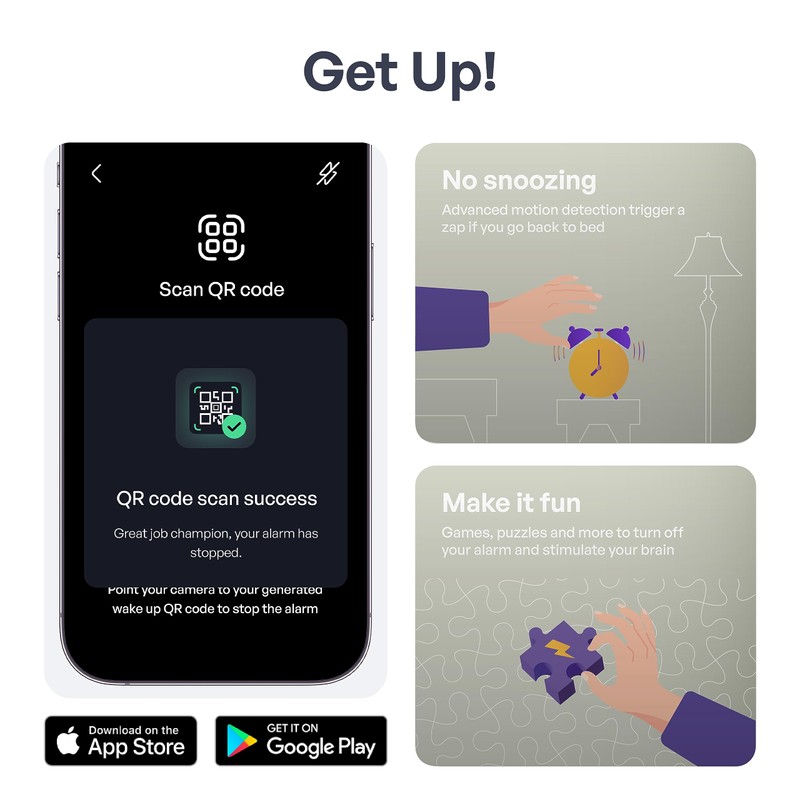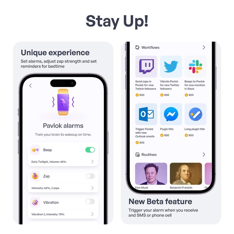 - WAKE UP ON TIME - The shock clock wake up trainer is the first ever device that uses proven psychological principles paired with haptic feedback (beep, vibration) and electric biofeedback (zap sensation) to train your brain to be a "morning person".