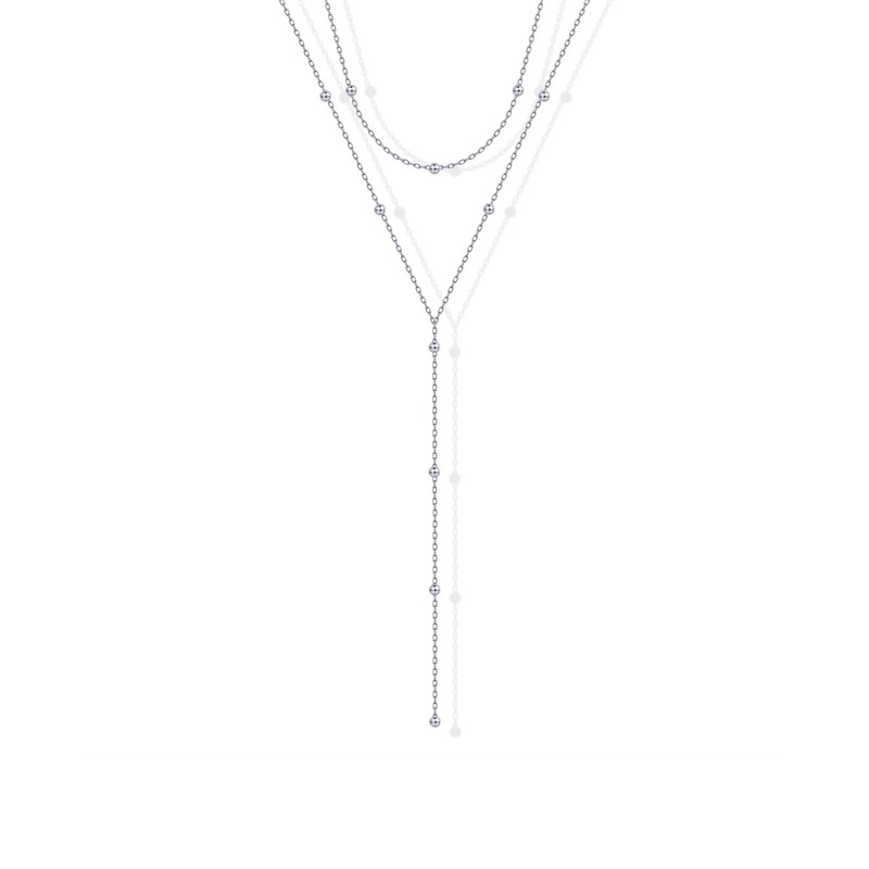 PAVOI 14K Gold Plated Chain Drop Lariat Necklace for Women | Gold Cubic Zirconia Long Necklace | Station Star Layered Beaded Y Necklace, White Gold, No Gemstone