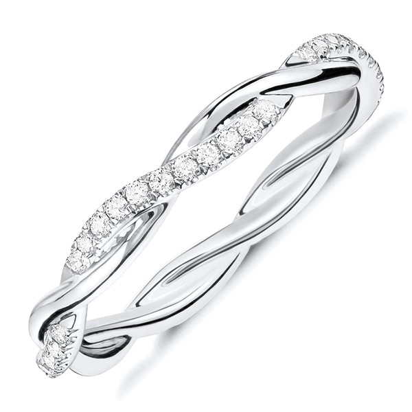 - ELEGANT DESIGN: Our twisted eternity band shines with a unique interwoven design that sparkles. A simple and dainty twisted rope design, this elegant eternity ring offers premium quality fashion and is available in rose gold, white gold and yellow gold.