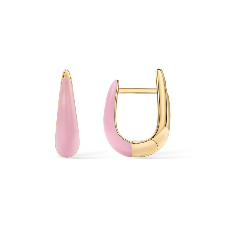 PAVOI 14K Yellow Gold Plated Sterling Silver Post Enamel U-Shaped Huggies | Colored Enamel Hoop Earrings for Women | Pink Enamel Jewelry