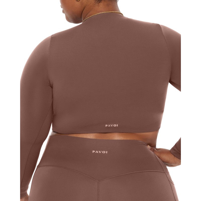 PAVOI ACTIVE HiPerform Collection | Women's Performance Medium Support Moisture-Wicking Long Sleeve Crop Top Gym Bra | Medium, Clay