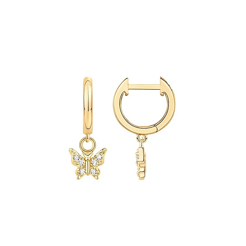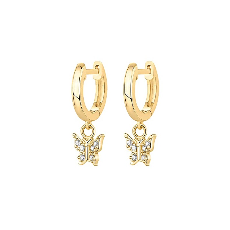 PAVOI PAVOI 14K Yellow Gold Plated 925 Sterling Silver Post Huggie With Dangle | Small Gold Trendy Hinged Hoop Earrings For Women | CZ Huggie Earrings (Butterfly)
