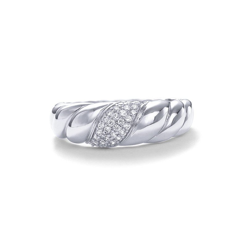 - This 14K rhodium plated chunky ring featuring the croissant style domed twist is right on trend - wear it alone or as a stacking ring