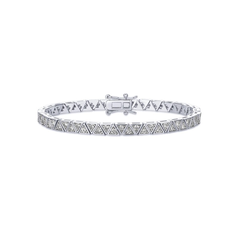 - Embrace the timeless vintage look of this 4.1mm wide tennis bracelet with triangle-shaped, trillion cut premium cubic zirconia stones in 1.5mm and 2mm sizes. This style blends retro and modern to add effortless class to any look.