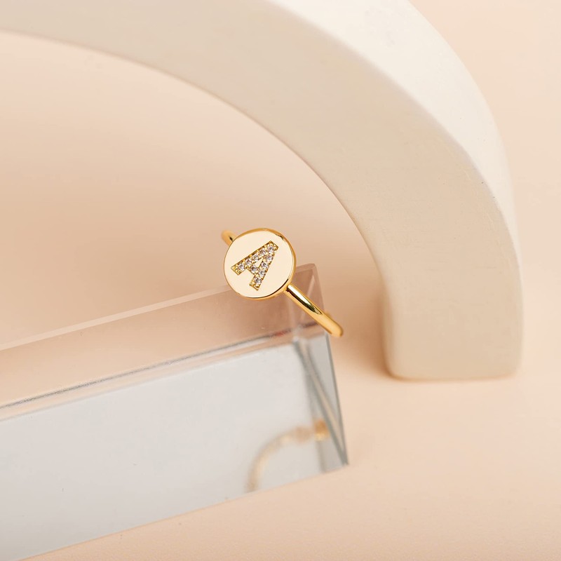 PAVOI Womens 14K Yellow Gold Plated Disc Initial Adjustable Ring | CZ Initial Ring | Initial Rings For Women | "Q" Initial Ring Q