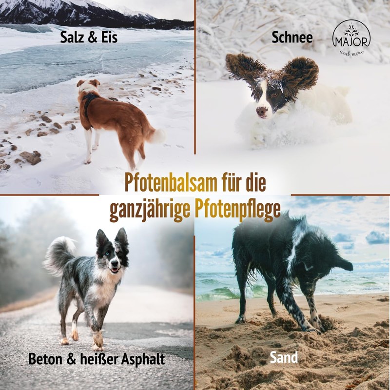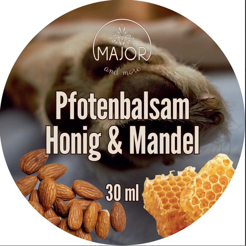 Major and More paw ointment - intensive care and protection for dog paws dog paws are exposed to various strains every day. Road salt, heat and cold can cause cracks and dry areas that cause pain to your loyal companion. Give your dog the care they deserve with our Major and More Paw Balm. Our paw cream with almond and honey protects and nourishes sensitive dog paws.