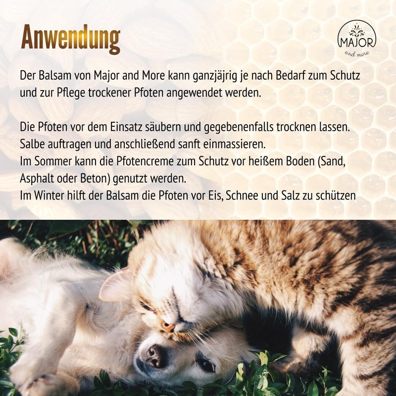 - Protection for dogs and cats paws: the Major and More paw cream provides long-lasting protection and care for dog paws and cat paws