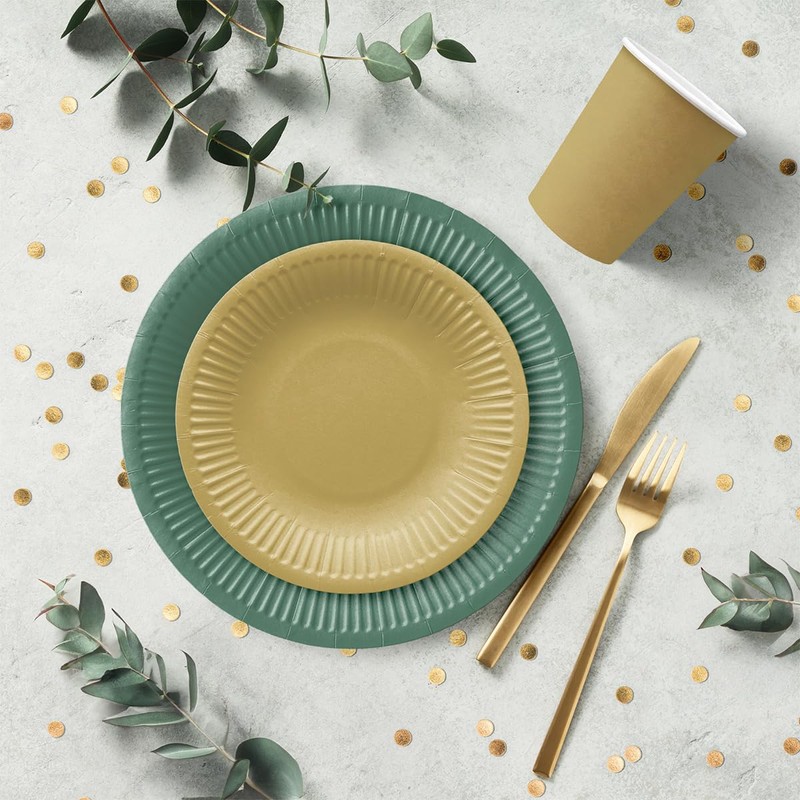 PAW - Paper Plates (18 cm) I Pack of 8 I Disposable Plates Ideal for Weddings, Communions, Parties, Birthdays I Water Based Paper Plate Print I Party Supplies 100% Biodegradable I Monocolour Gold