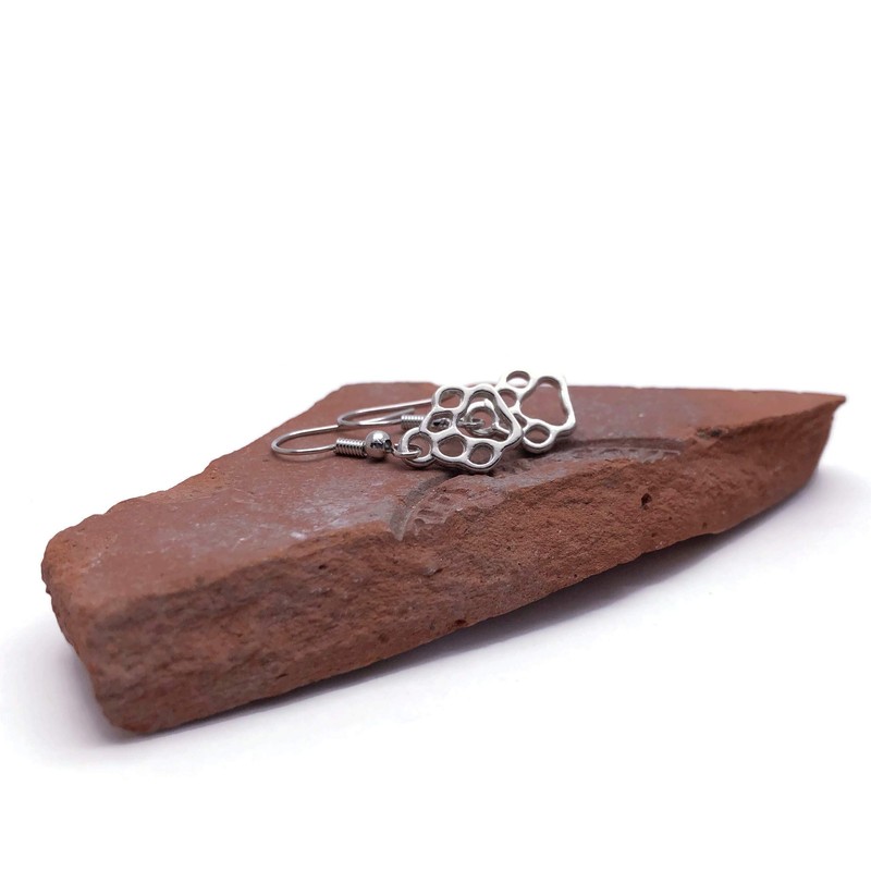 - Cute earrings with silver tone paw print charms, perfect for dog and cat lovers.