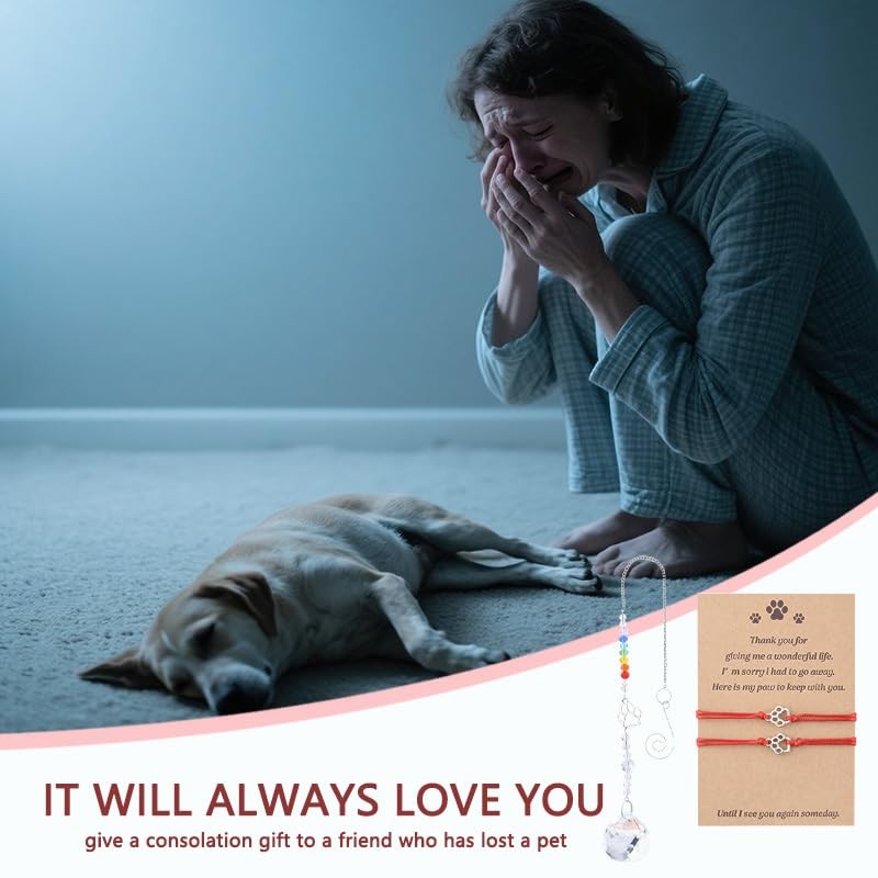 - Loss of Pets Sympathy Gifts for Women Men: You will receive a dog paw print sun catcher, 2 pcs red dog paw bracelets, and a pet condolence card reads"Thank you for giving me a wonderful life, I' m sorry I had to go away, Here is my paw to keep with you, Until I see you again someday", this dog paw bracelet can encourage her to cheer up, meaningful pet sympathy gifts for dog cat, motivational engravement gifts for pet lover