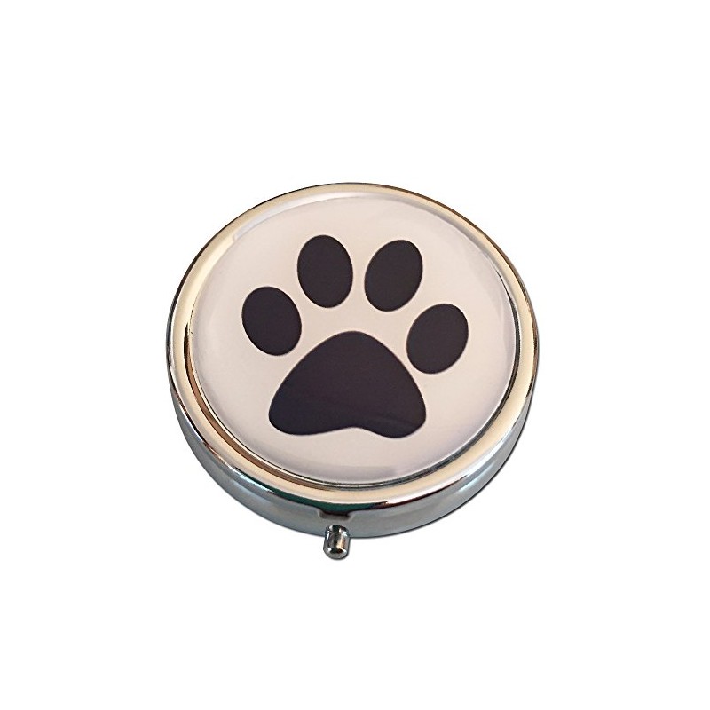 Paw Print Round Silver Three Section Pocket Purse Travel Pill Box Case