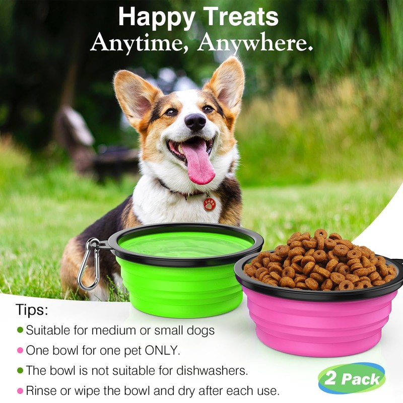 Pawaboo Collapsible Dog Bowls 2 Pack with Lids & Carabiners: