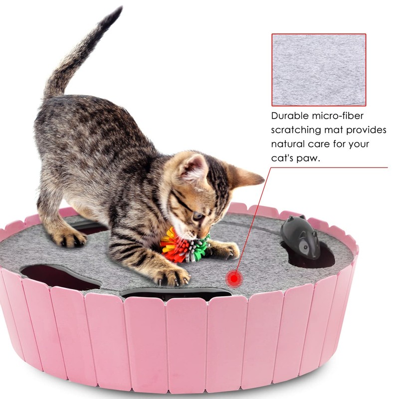 - 【 ELECTRIC CAT TEASER】:A cunning mouse plays hide and seek to captivate your pet's attention, simulating a real movement. This interesting way satisfies the needs of hunting instincts, physical exercise and stress reduction.
