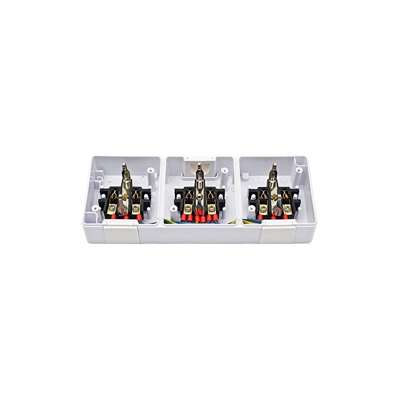 Produkt: Aufputz Steckdose Marke: PAWBOL Farbe : Grau Schutzart: IP44 Spannung: 250 V / 16 A Typ: 3-Fach Schuko