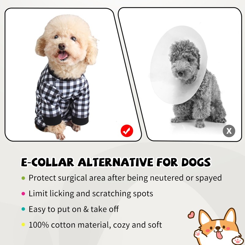Pawcomon Dog Onesie for After Surgery Recovery Suit Pet Surgical Suit for Female Male Cone E-Collar Alternatives After Spay Abdominal Wounds Protector Dog Anti-Licking Onesie for Small Medium Dogs