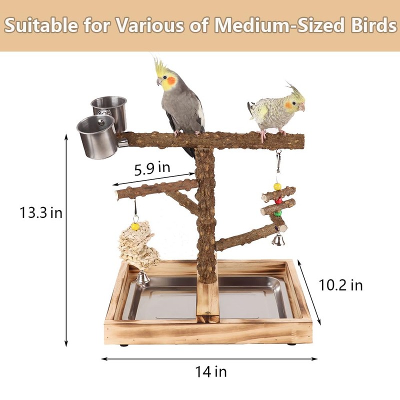 • Sizes suitable for various bird species: With dimensions of 14x10.2x13inch(35.6x26x34cm)and weight 1.3kg, our bird stand is suitable for a variety of bird species like a parrot. It provides a comfortable and entertaining space for your bird friends.