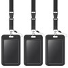 Pawfly 3 Pack Badge Holder Hard Black Vertical Plastic Card Case Protector Office School ID Credit Proximity Key Card Driver License and Pass Removable Strap Sliding