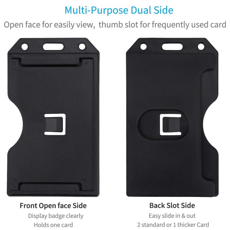 - Dual Side: Front open face is great for displaying one identity badge while back for stowing magnetic strip cards.