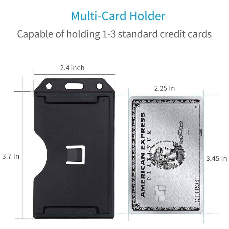 - Multi Card Holder: Holds 1 card on the front and up to 3 on the back. Open Face on front Side, Back Slot Holds Either Standard, or Thicker Proximity Card.