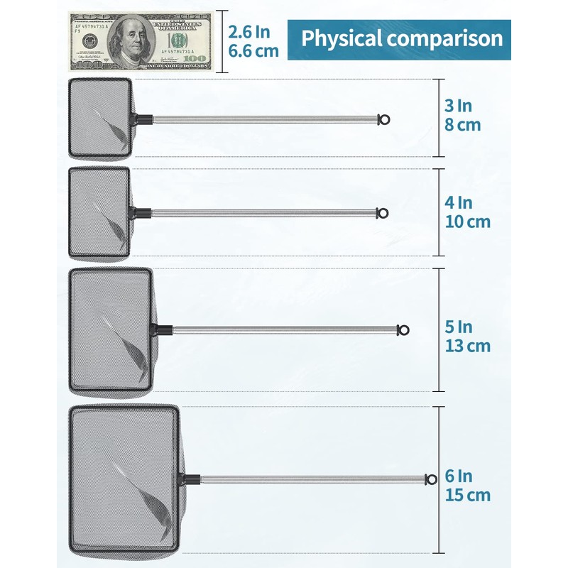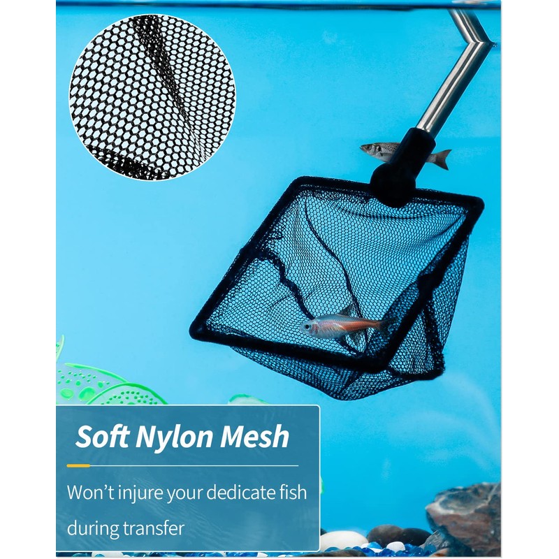 - Fine Nylon Mesh: The well-woven soft nylon mesh reduces the risk of injuries to delicate fish during transfer. Especially suitable for shrimp, newborn fry, betta, etc.