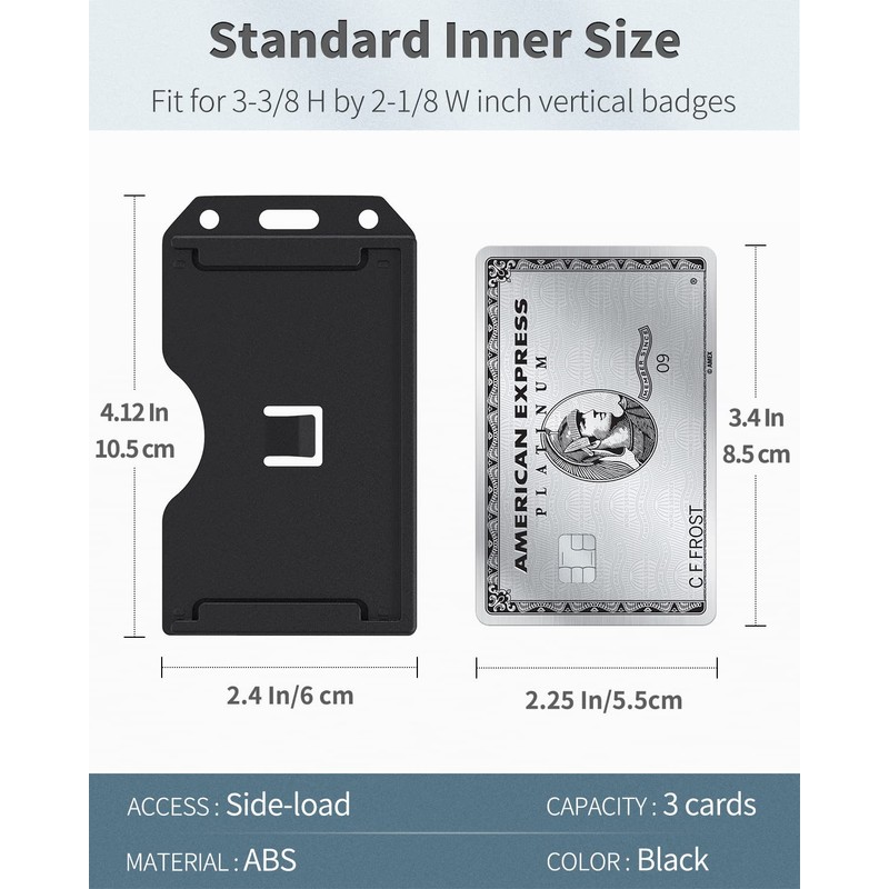 • Wide Applications: Inner size: 3.4" L x 2.2" W. Suitable for credit cards, ID cards, driver's licenses, access cards, passes, hotel key cards, clipper cards, proximity card, RFID badge, etc.