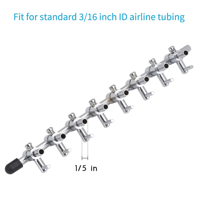 - Divida la potente salida de la bomba de aire en 8 puertos y alimenta más equipos impulsados por aire, como piedras de aire y filtros de esponja