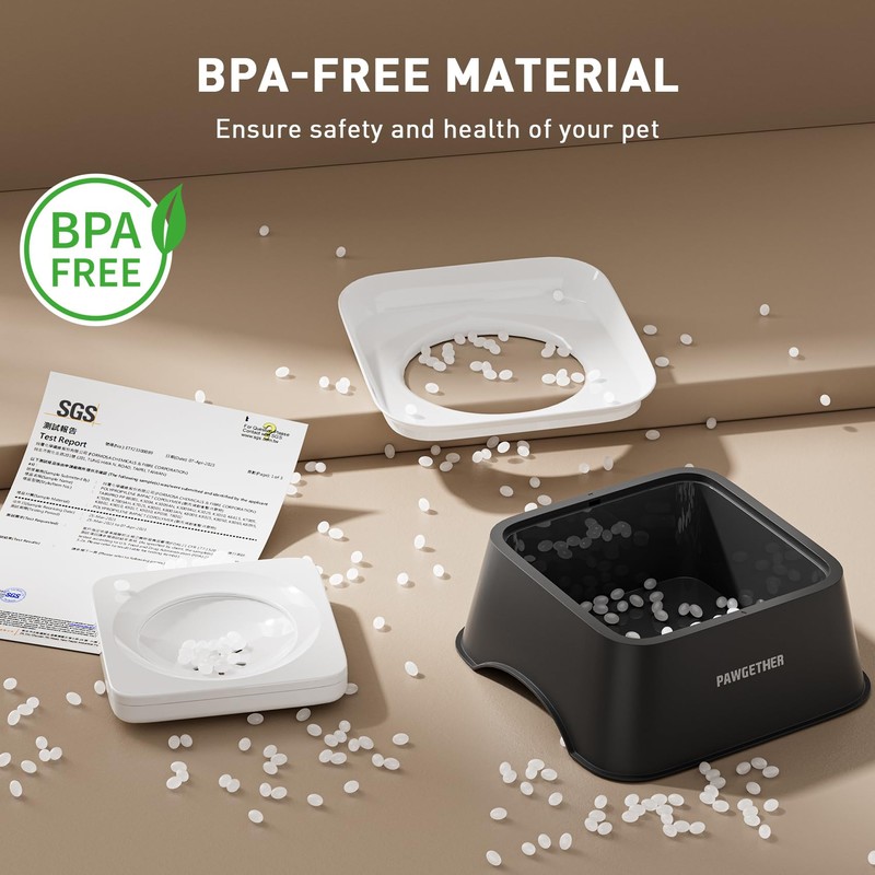 - FOOD-GRADE MATERIAL - PAWGETHER dog water bowl no spill made of rigorously tested and non-toxic Acrylonitrile Butadiene Styrene (ABS), resists chewing, contains zero BPA, and meets strict pet-safety standards for worry-free hydration.