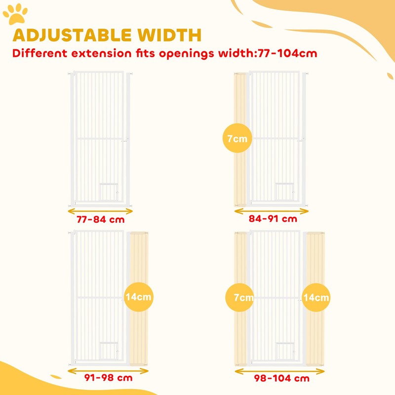 PawHut 59" Extra Tall Pet Gate for Cats, 30"-41" Cat Gate with Small Cat Door, 1.4" Narrow Gap, 2.8" and 5.5" Extension, Pressure Mounted No Drilling Dog Gate for Doorway, Hallway, Stairway, White