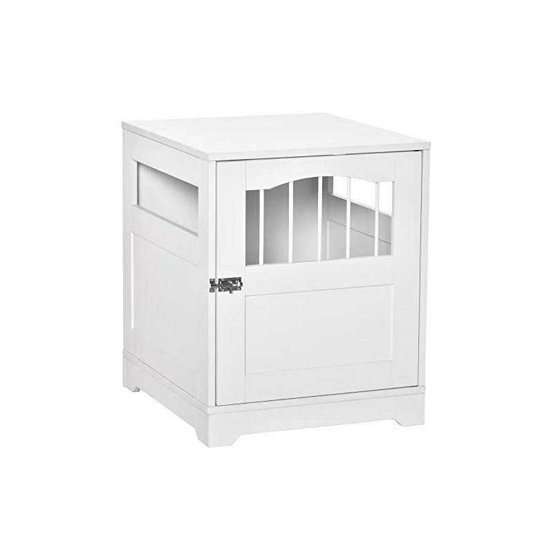 PawHut Furniture Style Dog Crate, Wooden End Table Pet Kennel with Lockable Door for Small Medium Dog Indoor Puppy Cage, White