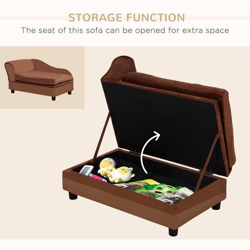 PawHut Luxury Fancy Dog Bed for Small Dogs with Hidden Storage, Small Dog Couch with Soft 3" Foam, Dog Sofa Bed, Cushy Dog Bed, Modern Pet Furniture for Puppies and Little Breeds, Brown