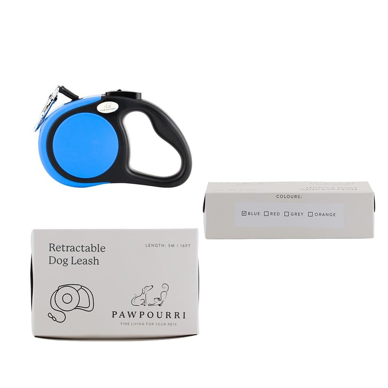 Pawpourri Retractable Dog Leash for Walking, Jogging, Training | One Button Brake with Premium Handgrip Suitable for Dogs up to 44Lbs (Blue)