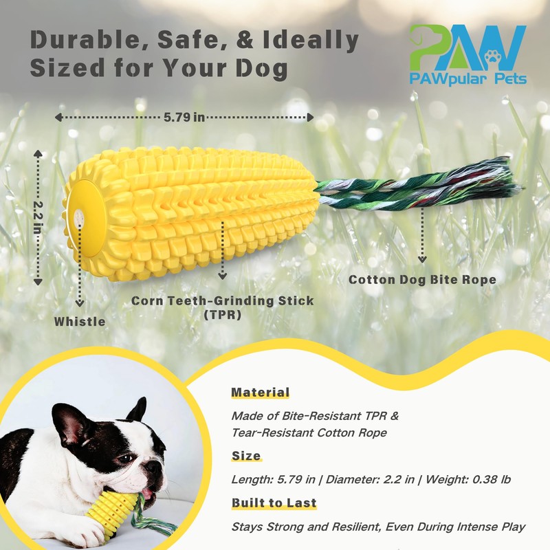 PAWpular Pets Indestructible Dog Chew Toy for Aggressive Chewers, Durable, Squeaky, Corn Stick Shape for Teeth Cleaning & Interactive Play, Puppy Toys, Suitable for Small, Medium, Large Breeds