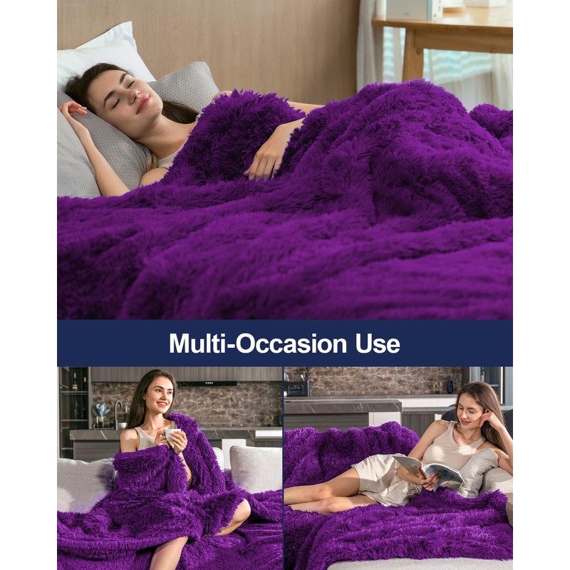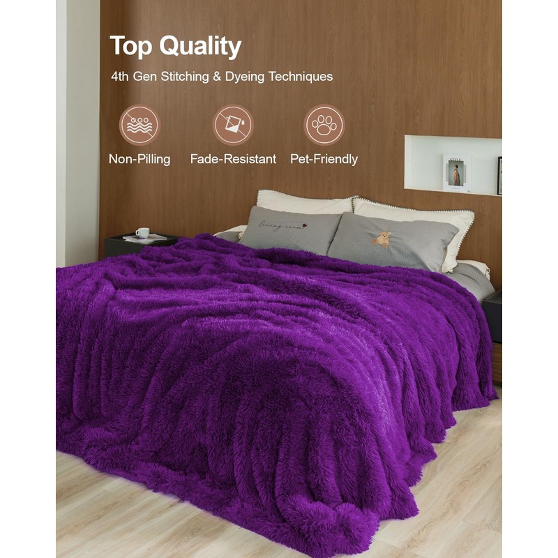 Pawque Faux Fur Blankets King Size 90x108 Inches, Soft Fuzzy Fluffy Blanket, Warm Thick Sherpa Long Hair Shag Reversible Lightweight Cozy Throw for Bedroom Sofa Couch, Purple