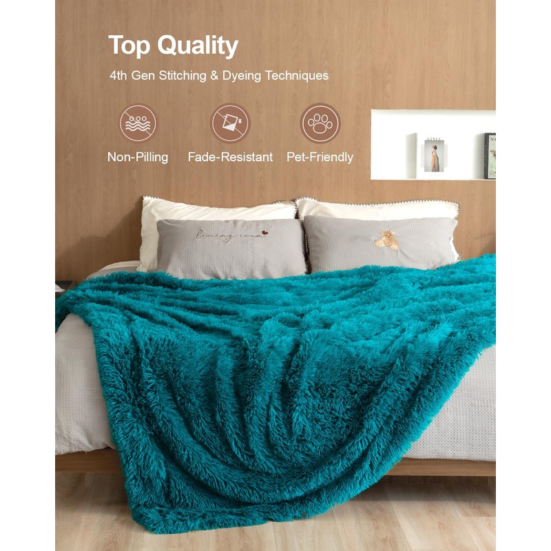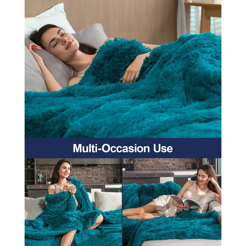 Pawque Soft Fuzzy Faux Fur Throw Blanket 60" x 80", Reversible Long Shaggy Cozy Furry Blanket, Queen Size Bedding Blanket, Decorative Fluffy Plush Fleece Comfy Microfiber Blanket, Teal Green