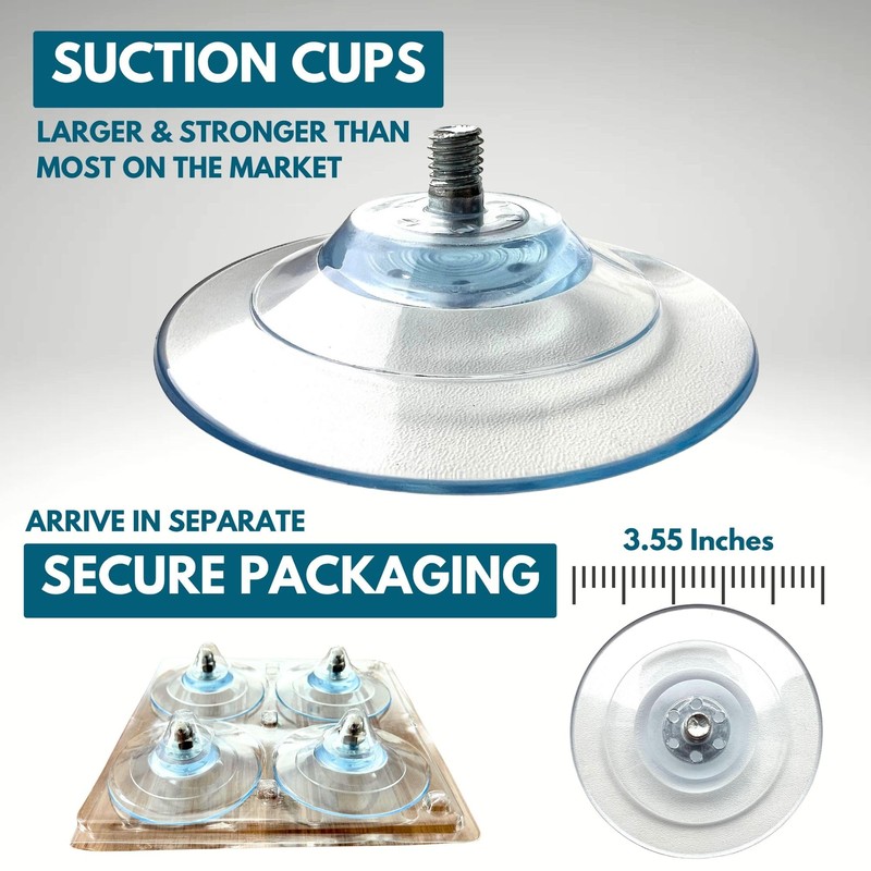 • FOUR STRONG & LARGE PREMIUM SUCTION CUPS — Designed with four large, heavy-duty suction cups that ensure a secure attachment to windows; For added convenience, the suction cups come in separate secure packaging to maintain their quality; Your cat can lounge safely and confidently in this window cat perch; Suction cup size 3.55 inches