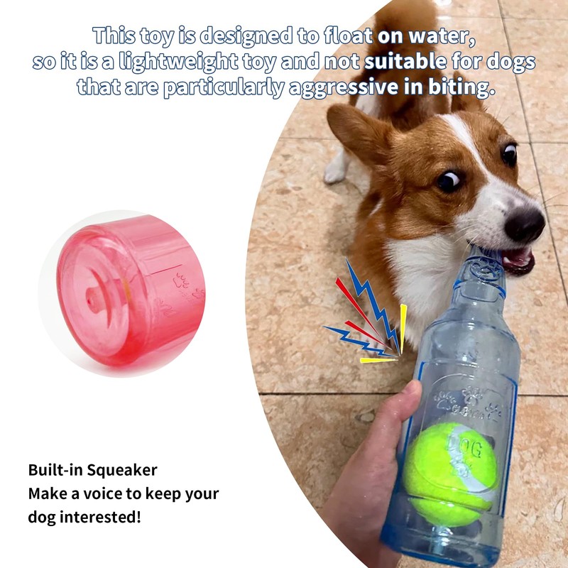 - Squeaky Dog Toy:Cute bottle shape with sound device, built-in a baseball that can roll inside the bottle,this is a multifunctional dog toy.