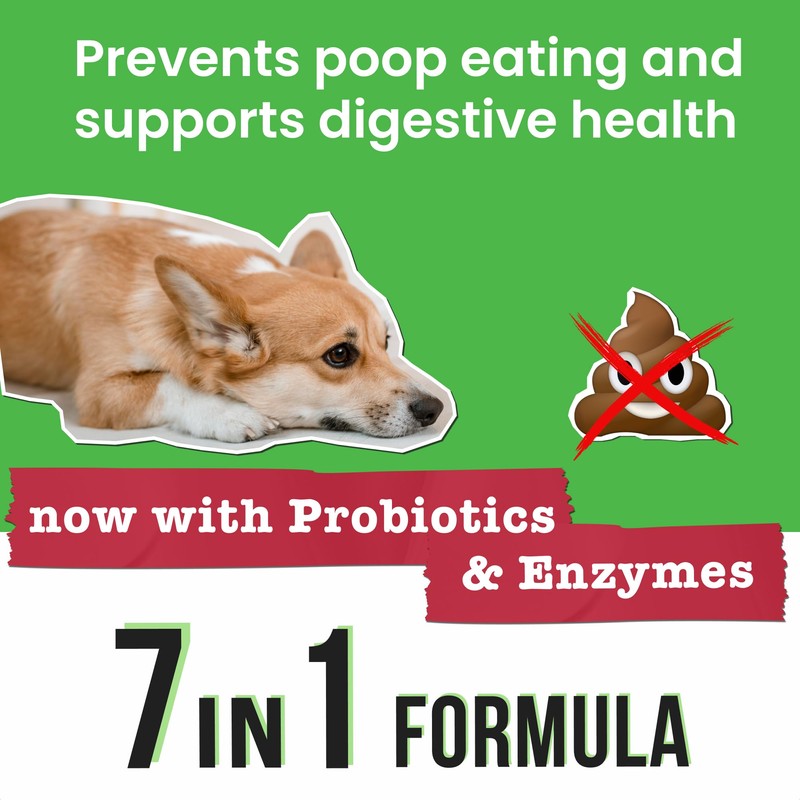 - Supports Digestive Health: Our stool eating deterrent for dogs, packed with probiotics and digestive enzymes, not only deters stool eating but also improves nutrient absorption and promotes a healthy gut.
