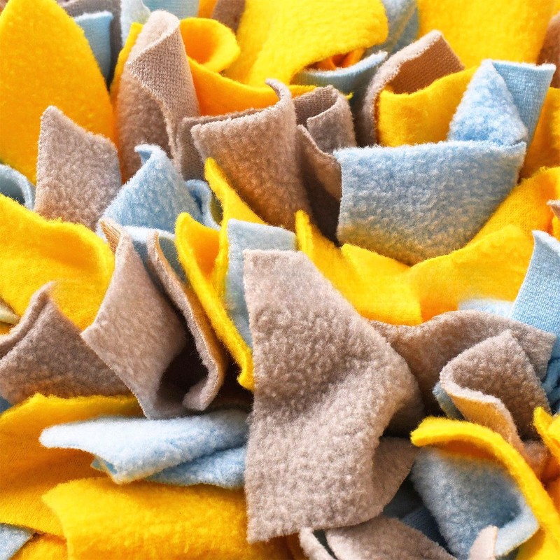 PAWSINSIDE Dog Snuffle Mat Interactive Fleece Sniff Feeding Food Mats Pet Foraging Treat Dispenser Slow Feeder Puzzle Toy for Dogs, Rabbits (Grey/Yellow/Blue)