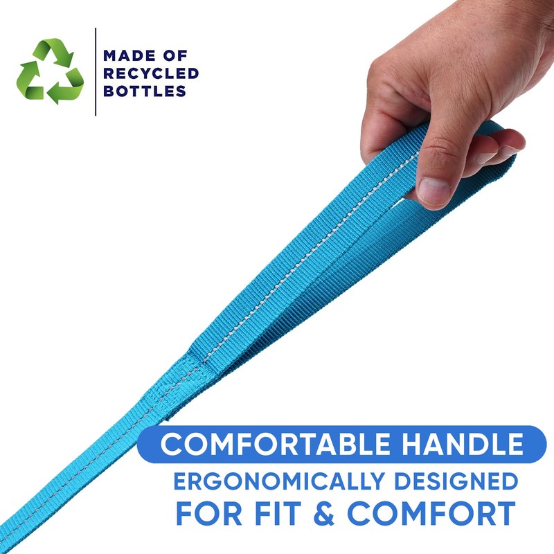 Pawtitas 6 FT Recycled Dog Leash with Reflective Stitched Thread Stitched on Side| Small Reflective Dog Leash Made from Plastic Bottles Collected from Oceans – Teal 6 ft Dog Leash