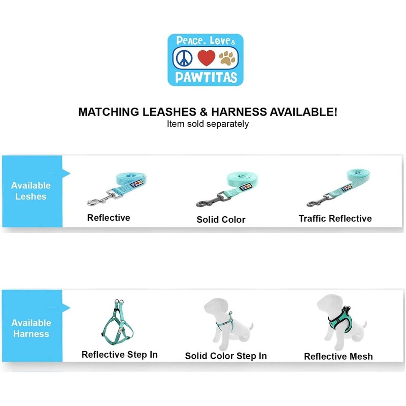 Perfect Fit! No matter the age, breed or weight of your pet our reflective dog collar is designed for puppies and small breed. Suitable for any stage of their lives: The collar is suitable for an extra extra small and medium dogs is an excellent choice for breeds such as the Pug Jack Russell Silky Terrier Cavalier King Charles. This is the way our leader collar are going to be with you through the entire stage of your pet's life. Durable Dog Collar: The Product Is Folded Over And Reinforced to build a heavy duty reflective collar. In Order To Increase The Tensile Strength Of The Product, The Reflective Dog Collar Is Constructed Of Nylon. Our dog Collar is design with high grade nylon, and black nickel hardware to withstand the test of time. We want safety not to be one of your concerns when walking your pet, we want your walks full of adventure, fun and good times with your pet. Fully Comfortable Pulling pressure is evenly distributed to the body to prevent pulling and choking. The dog collar have an adjustable strap with snap on buckle. More Colors, more fun! We understand we all are unique, so are our dogs with that philosophy in mind we created the Pawtitas Dog Collar with a large selection of colors available in al sizes. Matching accessories collar and leashes are available. Water resistant, machine washable do not tumble dry.