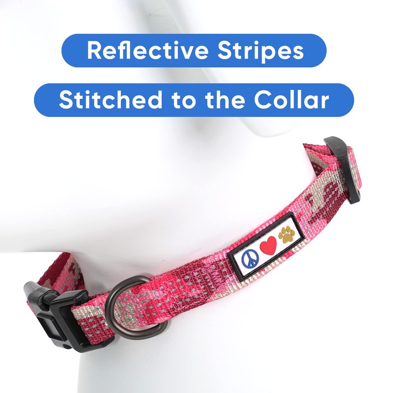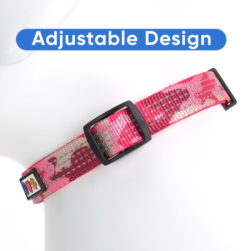 Pawtitas Reflective Dog Collar with Stitching Reflective Thread | Reflective Dog Collar with Buckle Adjustable and Better Training Great Collar for Small Dogs - Pink Camo Collar