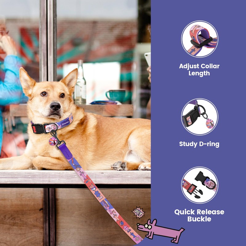 Pawview Dog Collar and Leash Set with QR Code ID Tag Adjustable, Durable & Stylish | Soft Handle, Waterproof & Easy to Clean (Purple, Medium)